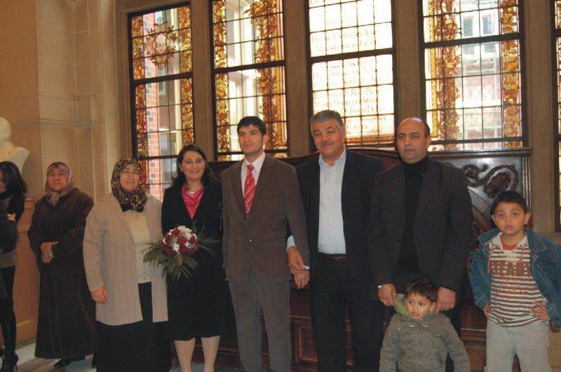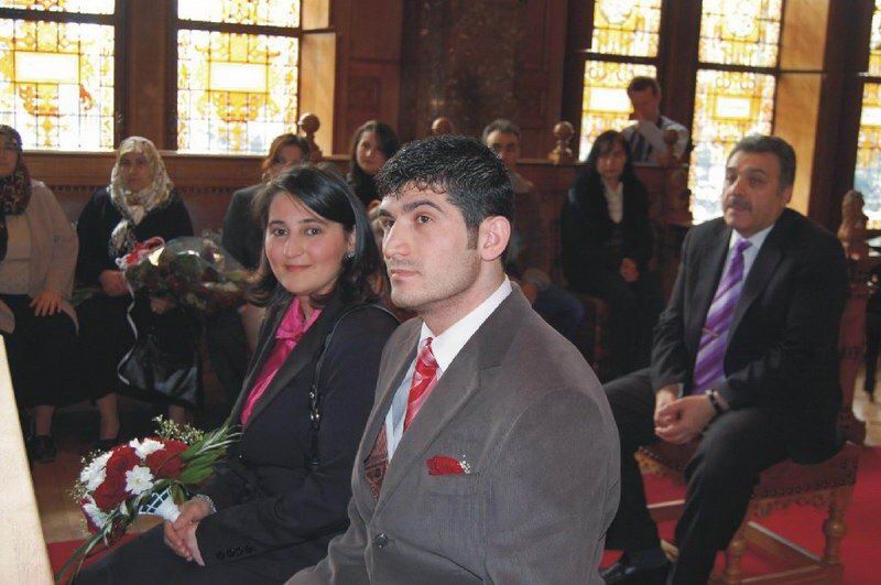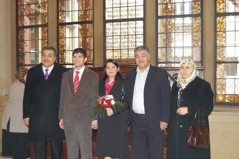 Schaerbeek Evlendirme salonunda evlendirmeden sorumlu Başkan yardımcısı Bernard Guillaumeâın bizzat kıydığı nikah sonrası, Lale ve Celal birbirini tebrik ederek, mutluluk gülücükleriyle davetlileri selam