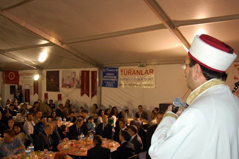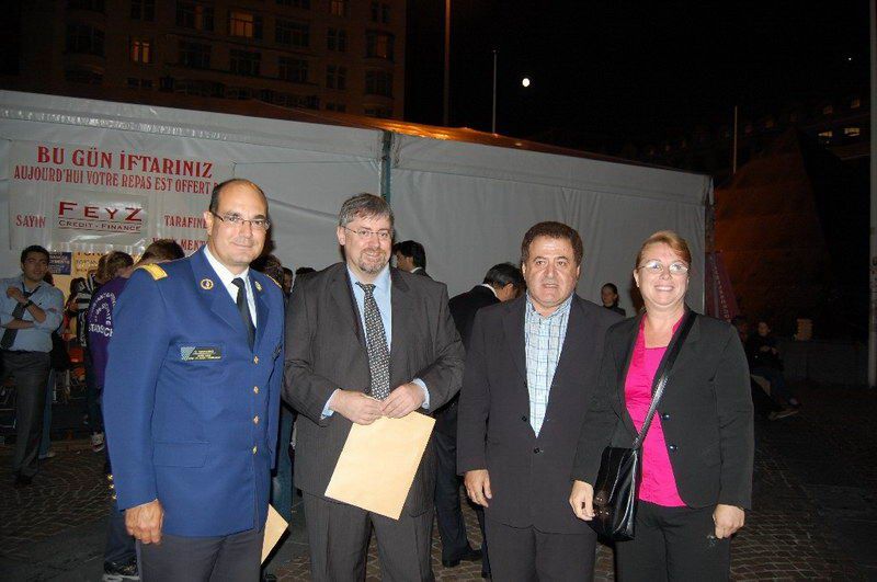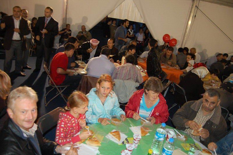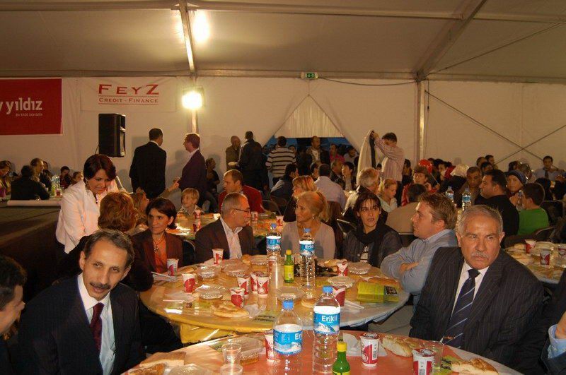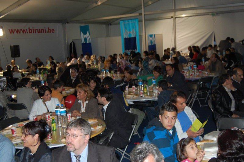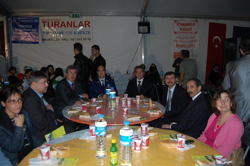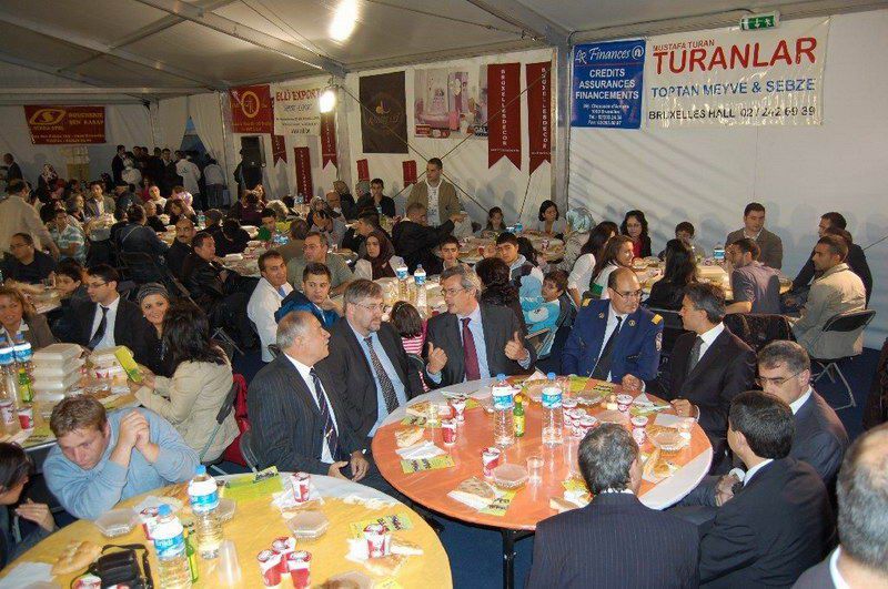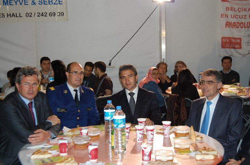 Kısa adı Anatolia olan Anadolu Kültürler Arası Diyalog ve Yardımlaşma Merkezi'nin her yıl geleneksel olarak sürdürdüğü iftar çadırı programlarının 4. bu yıl start aldı. Avrupa ve Belçika'nın Başkenti Brüksel'in kalbin olan Place Rogier'de kurulan iftar çadırındaki programlar 12-16 Eylül arasında 4 gün sürecek. Belçika'da yaşayan Türklerin yanında Belçikalı ve diğer uluslara mensup 400'ü aşkın kişinin birlikte iftar ettiği programda ezanı Diyanete bağlı Fatih camii İmamı Ãmer Bektaş okudu. Yemeğe ev sahipliği yapan Anatolia Başkanı Abdullah Yiğit'în yanında T.C. Brüksel Büyükelçisi Fuat Tanlay, Federal Hükümet Devlet Bakanı Bernard Clerfayt, Brüksel Hükümeti Devlet Bakanı Emir Kır, Brüksel Büyükşehir Belediyesinden Alphonse Peetrs, Başkomiser David Yansenne, Diyanet Müşaviri Prof. Dr. Halife Keskin, Bakan danışmanı ve Evere Meclis Ãyesi Nebahat Acar, Saint Josse Belediye Başkan Yardımcıları Hava Ardıçlık, Nezahat Namlı, Memlemans Beatrice, Schaerbeek Belediye Meclis Ãyesi Derya Aliç, Anderlecht belediye Meclis Ãyesi Hediye Yiğit, Saint Josse belediye Meclis Ãyesi cevdet Yıldız, Prizma Koordinatörü Hümeyra Akdağ, Sosyal Danışnman Birgül Kapaklıkaya, Belçika Haber Halkla İlişkiler Müdiresi Zerrin Aydın, Dr. Abdurrahman Kara, Siyasetçi Hakan Esen, işadamları ve sivil toplum temsilcileri katıldı. Açılış konuşmasını yapan Anatolia Dernek Başkanı Abdullah Yiğit "Ãncelikle hepinizin Ramazanını tebrik ediyoruz. Bu gün burada diğer uluslara mensup misafirlerimizle bir arada olmanın sevincini yaşıyoruz. Uzaktan yakından programımıza teşrif eden ve bu programın organizasyonuna katkıda bulunan resmi makamlara ve işadamlarımıza teşekkür ediyoruz" dedi. Devlet bakanları Bernard Clerfayt ve Emir Kır yaptıkları selamlama konuşmalarında. ramazan'ın sosyal ve dayanışmaya büyük katkı sağladığına bu gün şahit oluyoruz. Her ulustan Belçikalıların bir arada dayanışma ve dostluk tablosu elbette bizleri memnun ediyor. Bu güzel ortamda sizlerle bir arada olmaktan memnun olduk dediler. Büyükelçi Tanlay 'Hepinizin Ramazanını tebrik ediyorum' diye sözlerine başlayarak. "Bu gün burada tüm uluslara mensup insanların vatandaşlarımızla bir arada manevi bir atmosferi paylaşmaları ve dayanışmaları beni sevindirdi. Bu gibi etkinliklerin kültürel katkıları yanında sosyal tanışma ve dayanışmayıda beraberinde getirdiğini görüyoruz. Organizasyonu gerçekleştirenlere teşekkür ediyorum" dedi. Protokol davetlilerine Hattatların yazdığı ve kendi isimlerinin yer aldığı hediyeler verildi. ramazan'ın anlamını içeren Fransızca broşürler davetlilere dağıtıldı. Siyasilerin, işadamları ve sivil toplum yöneticilerinin hazır bulunduğu iftar programında Mevlevi gösterisi sunuldu. Ãocukların sunduğu gösteri alkışlandı. Dışarıda kurulu stantta ilahi ve ezgiler okundu. www.belcikahaber.be