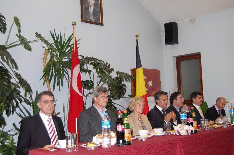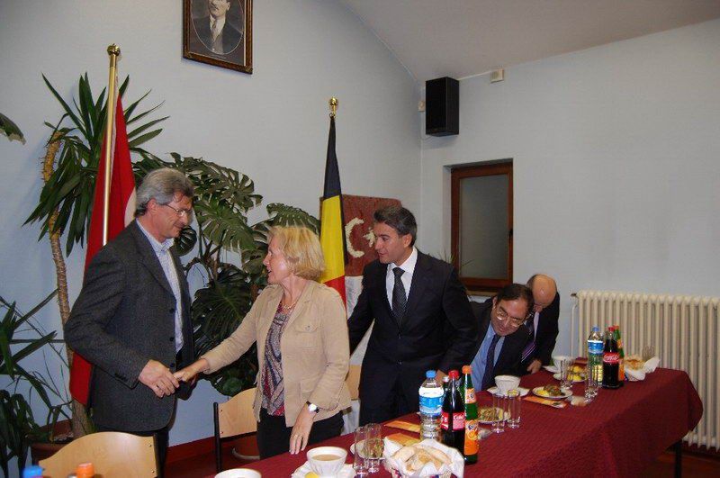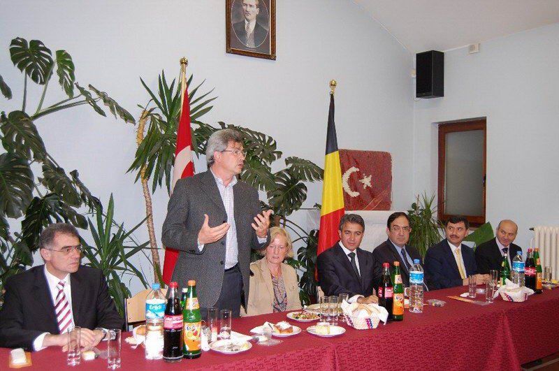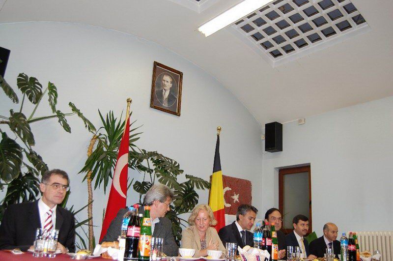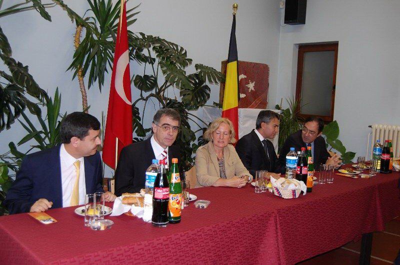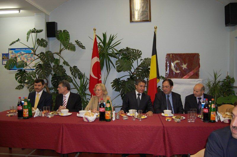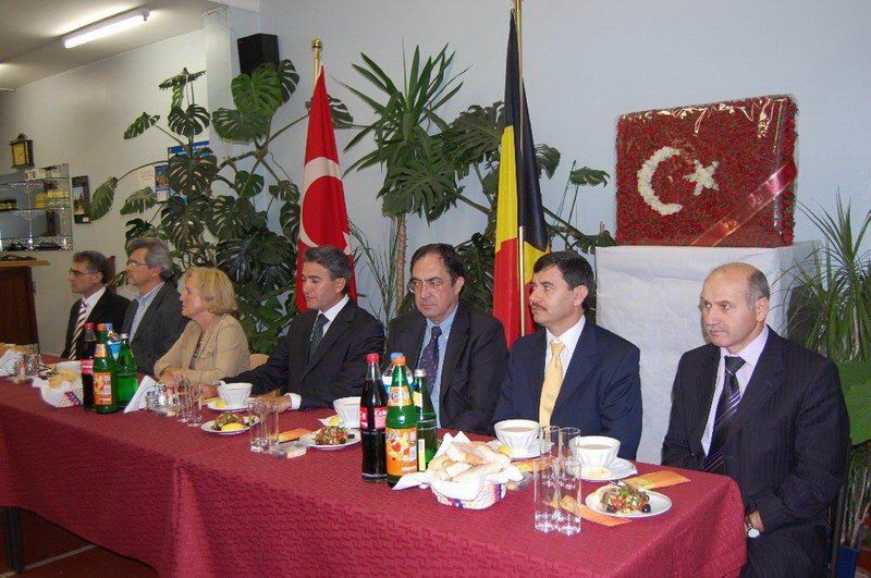 Belçika Türk Diyanet Vakfı iftar serisi devam ediyor. Dün ise iftar programının davetlileri resmi ricaldi. Sıcak bir atmosferde gerçekleştirilen iftar yemeğine Diyanet Müşaviri Prof. Dr. Halife Keskin ev sahipliği yaptı. Davetlilerini sıcak bir şekilde kapıda karşılayan Keskin'in mutluluğu gözlerinden okunuyordu. İftar programına T. C. Brüksel Büyükelçisi Fuat Tanlay, Federal Hükümet Devlet Bakanı Bernard Clerfayt, Eşit Haklar Bakanı Brigitte Grouwels, Ãevre Bakanı Emir Kır, Anvers Başkonsolosu Ahmet Arda, Muavin Konsolos Hasan Solak, Eğitim Müşaviri Tolga Yağızatlı, Büyükelçilik mensupları, Müslüman Temsil Kurumu Başkanı Şemsettin Uğurlu, Schaerbeek Belediye Başkan Yardımcısı Sait Köse, Bakan Danışmanı ve Evere Belediye Meclis Ãyesi Nebahat Acar, Schaerbeek Belediye Meclis Ãyesi Mahinur Ãzdemir, Sosyal Danışman Birgül Kapaklıkaya, Belçika Haber Halkla İlişkiler Müdiresi Zerrin Aydın, dernek yönetim kurulu üyeleri, basın mensupları katıldı. Ezan'ın okunması ve duaların edilmesinden sonra iftarlar açıldı ve protokoldekilerin selamlama konuşmalarına geçildi. Prof. Dr. Halife Keskin ev sahibi olarak davetlilerini selamlayarak, günün anlamı ile ilgili kısa bir konuşma yaptı. Eşit Haklar Bakanı Brigitte Grouwels, "Uzun zamandan beri siz Müslüman toplumun içindeyim. Müslümanların hoşgörüsünü biliyorum. Daha dün Katolik bir toplantıdaydım oradada hoşgörüyü gördüm. Dinlerarası bu dayanışma ve tanışma güzel bir atmosfer oluşturmakta. Bu güzellikler toplumumuzun barışık içerisinde yaşamasına büyük katkıdalarda bulunmakta. İslam dini barış, dinidir sevgi dinidir. Bu barış dini mensubu sizlere çok teşekkür ediyorum" dedi. Bakan Bernard Clerfayt; "Müslümanların yoğun olduğu bir bölgenin başkanı ve bakanı olarak sizleri çok yakından tanıyorum. Müslüman olmamama rağmen müslümanların inanç ve kültürlerini sizler sayesinde yakından biliyor ve saygı duyuyorum. İslam Dini everensel bir barıştan, hoşgörüden yanadır. Sizleri her zaman birlik ve dayanışma içerisinde tutan bu güzel ramazanınızı tebrik ediyorum" dedi. Bakan Emir Kır ise, yaptığı konuşmada, "İslam dinine yönelik olumsuz havanın özellikle 11 eylül sonra yaygınlaşması müslümanlara.olumsuz yansıdı. Biz İslam dininin bir barış dini olduğunu, insanlığı kucakladığını biliyoruz. Ancak toplumsal barışa gölge düşürecek ithamları kabul etmiyoruz. İslam'ın diğer din mesuplarına gösterdiği büyük hoşgörü, sevgi ve saygıyı bu gün Avrupa ve Belçikamızın her tarafında bu gibi etkinliklerle görülmektedir. Bu gibi manevi dostlukların tüm inançlar ve kültürleri birbirine barışık kıldığını düşünüyor, hepinizin Ramazanınızı tebrik ediyorum" dedi. Büyükelçi Tanlay: "Konuşmacıların bu güzel mesajlarına katılmamak mümkün değil. Ãzellikle bu gibi etkinliklerin toplumsal barışa insanların birbirlerini daha yakın tanımaya yönelik katkıları gözardı edilemez. Sizleri inanç ve kültürlerinizi bulunduğunuz ülke insanlarıyla birlik ve beraberlik içerisinde yaşamanız bizleri mutlu ediyor. Toplumsal huzura katkı yapan bu gibi güzel toplantıların insanlarımıza ve toplumlarımıza güzel bir şekilde yansıdığını görmek güzel bir duygu. Bu nedenle Ramazanınızı en içten duygularımla tebrik ediyor, bayramda da görüşmek dileğiyle hosça kalın" dedi. Protokol konuşmalarıda söylenen güzel ifadeler davetlilerin alkışlarıyla desteklendi. www.belcikahaber.be