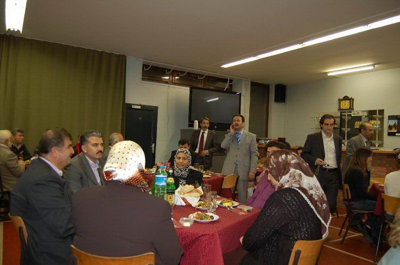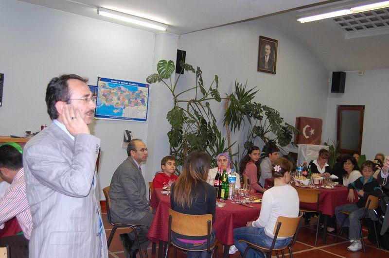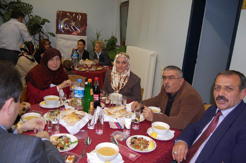 Belçika Türk Diyanet Vakfı'nın her yol geleneksel olarak sürdürdüğü iftar programları devam ediyor. Diyanete bağlı Kadın Kolları Başkanlığının verdiği iftar yemeğine Belçika genelinde görev yapan kadın dernekleri katıldı. İftar programına ev sahipliği yapan Diyanet Kadın Kolları Başkanı Dudu Akçalık'ın protokol davetlileri, Din Hizmetleri Müşaviri Prof. Dr. Halife Keskin, Diyanet Yönetim Kurulu Ãyeleri Ali Gün, Coşkun Beyazgül, Ak Camii Din Görevlisi Mithat Bakar, Bakan Danışmanı ve Evere Belediye Meclis Ãyesi Nebahat Acar, AIMEE Başkanı, Esma Caner, AXA Orhan Liman Bankası Yönetim Kurulu Başkanı Orhan Liman, İş kadını Filiz Fındık, Liege St. Nikolas Kanuni Sultan Süleyman Camii Kadın Kolu Başkanı Nilgün Koçak, Diyanet kadın kolları üyeleri, Türkçe ve Türk Kültürü Ãğretmenleri idi. Fatih Cami imamı Ãmer Bektaş'ın okuduğu ezanla iftarlar açıldı. Yapılan dualara tüm davetliler eşlik etti. Başkan Dudu Akçalık'ın davetlilerle tek tek ilgilendiği programda Din Hizmetleri Müşaviri Prof. Dr. Halife Keskin davetlilere 'hoş geldiniz' dedikten sonra, "Bildiğiniz gibi Kadın Kolları Başkanlığımız, siz değerli üyelerimize her yıl olduğu gibi bu yılda bir iftar programı gerçekleştirdi. Sizlerle bu güzel ramazan programında olmaktan dolayı çok mutluyuz. Sizler toplumumuzun en dinamik en önemli unsurlarısınız. Evlatlarımızın eğitilmesinde çok önemli bir göreviniz var. Ãocuklarınızın maddi ve manevi sorunlarıyla en yakından sizler ilgileniyorsunuz. Evlatlarınızı okutun onlara en güzel eğitim imkanlarını hazırlayın. Unutmamalıyız ki; eğitimli, sevgili, saygılı ve inançlı bir toplumun hem kendisine hem de bulundukları toplumlara yararları vardır. Bu duygularla hepinizi saygıyla selamlıyor, hayırlı ramazanlar diliyorum" ddi. Program sıcak bir ortamda ikili sohbet ve tanışmalarla son buldu. belcikahaber.be 20-09-2008