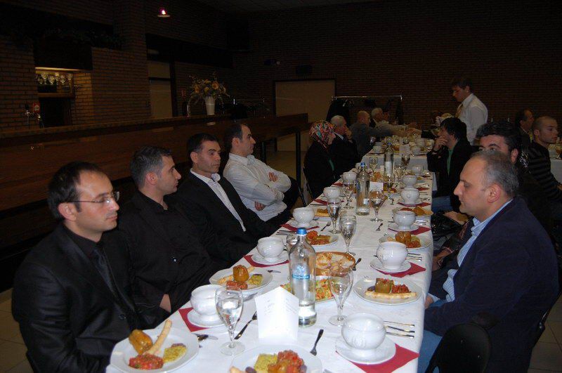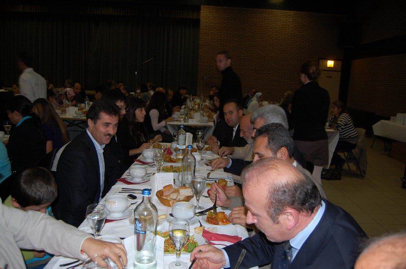 Hilal Yalçın'dan İftar Entegrasyonu Belçika Federal Milletvekili Hilal Yalçın ve eşi Nuh Alkış, Heusden Zolder Ons Huisâde bir iftar yemeği verdiler. Davetlilerini kapıda karşılayan Yalçın ve Nuh çifti katılımdan duydukları memnuniyeti dile getirdiler. Kısa bir selamlama konuşması yapan Hilal Yalçın Belçika ve Türk siyaset, iş dünyası ve sivil toplum kuruluşlarının temsilcilerinden oluşan 400'ü aşkın davetliye teşekkür ederek, Başbakan Letterme'nin mesajını iletti. Yalçın, "Sayın Başbakanımız Fortis bank görüşmeleri ve gelişen global kriz nedeniyle programımızı önceden teyid etmesine rağmen katılamadı. Başbakanımız, "Ãok arzulamama rağmen aranızda bulunamıyorum. Gelişen son global kriz nedeniyle sizlerin parasını kurtarmak ve devlet teminatına almak için çalışıyoruz. Sizlere afiyet olsun" dediğini söyledi... Yemek duası ve fatiha okuması ile devam eden iftar, kalabalık davetlilerin sohbetleri ile sürdü. İftara T.C Brüksel Başkonsolosu Fuat Tanlay eşi Yelda Tanlay ile birlikte katılırken, Belçika Diyanet Vakfı Başkanı ve Din İşleri Müşaviri Halife Keskin, Belçika Müslüman Temsil Kurumu Başkanı Şemsettin Uğurlu, Kurumun Flaman Bölgesi Başkanı Mehmet Ãstün, Avrupalı Türk Demokratlar Birliği Başkanı Eşref Yazıcıoğlu, Belçika İslam Federasyonu Başkanı Zeki Bayrafktar, Turkse Unie Başkanı Rıfat Can, Doğuş Derneği Başkanı Nurten Caz, Musiclup Başkanı İsmail Erdoğdu, Belçika Spor Federasyonu Başkanı Hüseyin Dönmez, Azerbaycan Belçika Dostluk Cemiyeti Temsilcisi Ayhan Demirci, Lucerne Kolejleri Başkanı Musa Soytemiz, Kültürlerarası platform temsilcileri, Limburgâde faaliyet gösteren tiyatro grupları, Limburglu Türk kökenli Yazar Mustafa Kör, Beringen Belediye Başkan Yardımcısı Selahattin Koçak (sp.a), Genk Belediye Başkan Yardımcısı Ali Ãağlar, Genk Belediye Meclis üyesi Fatma Yıldız, CD&V Federal Milletvekili Raf Terwingen,CD&V Senatörü Wouter Beke, Flaman Parlamentosu Milletvekili Veerle Heeren, Heusden-Zolder Belediye Başkanı Sonja Claes, Hasselt Barosu Başkanı Patrick Berben, Limburg ACW Genel Sekreteri Koen Albregts, Limburg ACV Başkanı Mathieu Verjans Bakan Danışmanı ve Evere Belediye Meclis Ãyesi Nebahat Acarâın yanında Yalçın ve Alkışâın arkadaşları katıldılar. www.belcikahaber.be