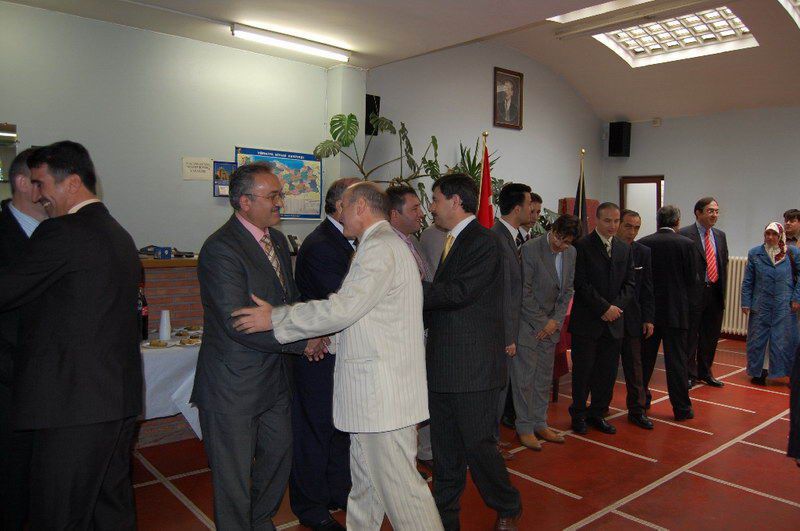 Belçika Diyanet Vakfı her yıl olduğu gibi yılda Brükselâde bulunan Vakıf Lokaliânde bir bayramlaşma töreni organize etti. Törene Brüksel Bölge Hükümeti Bakanı Emir Kır, T.C. Brüksel Büyükelçisi Fuat Tanlay, Brüksel Başkonsolosu Mehmet Poroy, Anvers Başkonsolosu Ahmet Arda, Eğitim Müşaviri Tolga Yağızatlı, Belçika İslam Temsil Kurumu Başkanı Şemsettin Uğurlu ve muavin konsoloslar katılırken, çok sayıda dernek temsilcisi de hazır bulundular. Törende başta Diyanet Vakfı Başkanı ve Din Hizmetleri Müşaviri Prof.Halife Keskin olmak üzere Bakan Emir Kır ve Belçika İslam Temsil Kurumu Başkanı Şemsettin Uğurlu, T.C. Brüksel Büyükelçisi Fuat Tanlay birer konuşma yaptılar. Konuşmacıların hepsi de bu yıl yapılan iftarlar ve bu iftarlarda Belçikalı dostlarımızın da aramızda bulunmasından duyulan memnuniyet dile getirdiler. Diyanet Vakfı Başkanı ve Din Hizmetleri Müşaviri Prof.Halife Keskin yaptığı konuşmada konuklara hoşgeldiniz derken, bayramlarda birlik beraberliğin öneminden bahsetti. Keskin, burada bu bayramda birlikte olmaktan dolayı duyduğu memnuniyeti dile getirdi. Belçika İslam Temsil Kurumu Başkanı Şemsettin Uğurlu da konuşmasında kurumda son günlerde yaşanan olumsuzluklardan bahsederek, bu Ramazanâda yaşanan dostluk görüntülerinin ise çok olumlu olduğunu ifade etti. Brüksel Bölge Hükümeti Bakanı Emir Kır da konuşmasında geçtiğimiz Ramazanâda Belçikalılarla birlikte yaşanan iftarların Müslümanlığın doğru tanınmasında çok pozitif katkıı yaptığını vurguladı. Büyükelçi Fuat Tanlay konuşmasını bir vaazda dinlediği Halil İbrahim hikayesini anlatarak yaptı. Büyükelçi Tanlay, Halil İbrahim bereketinin anlatıldığı hikayede karşındakini kendin gibi düşünme ve paylaşma duygularının önemime vurgu yaptı. Tatlı ikramı ile konuklar birbirleriyle bayramlaşarak sohbet ettiler.