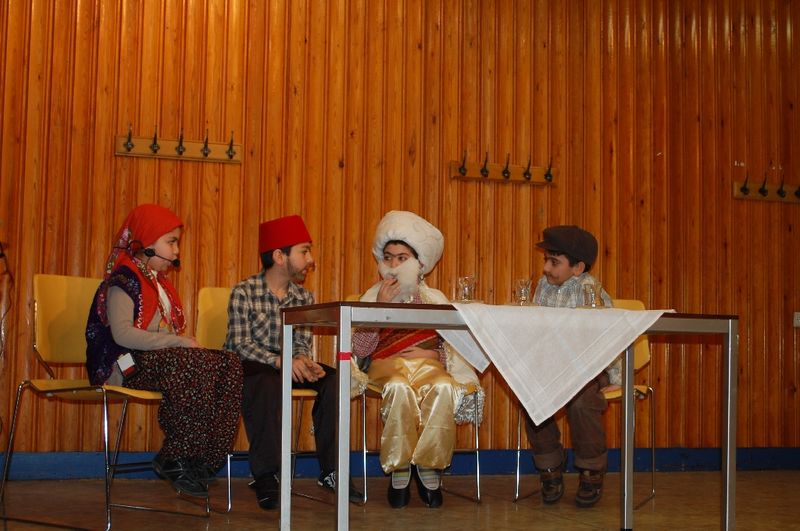 Fatma Yalçın öncülüğündeki minik tiyatro ekibinin sunduğu 3 bölümlük Nasreddin Hoca'dan hikayeleri Fransızca sunuldu. Ayoub, Chaima, Fatih ve Sedat'ın rol aldığı oyun davetliler tarafından ayakta alkışlandı.