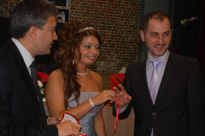 Diegem'de yapılan nişan törenine Bakan Emir Kır, Saint Josse Belediye Başkan Yardımcısı Havva Ardıçlık, Schaerbeek Belediye Meclis Üyesi Derya Aliç, aileleri dosatları katıldı.