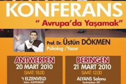 20 Mart 2010´da saat 18:00´de ´t Elzenveld´de (Lange Gasthuisstraat 45 / 2000 Antwerpen) konferans verecek olan Dökmen, 21 Mart 2010 da ise saat 12:00´de Alyans Düğün Salonu´nda (Koolmijnlaan 307 / 3851 Beringen) Limburg´lu seyircilerle buluşacak. Girişlerin ücretsiz olacağı bildirildi.