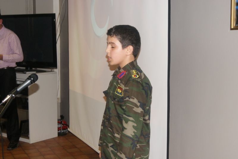İstiklal marşını ezbere okuma yarışmasına 19 ilkokul öğrencisi katıldı. Milletvekili Veli Yüksel (CD&V), Türkçe ve Türk kültürü dersi öğretmenleri Recep Çırık ve Ömer Durak ve Prof. Nurullah Genç’ten oluşan jüri Elif Kahraman’ı yarışmanın galibi ilan ettiler. Yarışmada Gülsüm Durna ikinci ve Rümeysa Özsoy da üçüncü oldu. Böylece Elif Kahraman’a bir laptop, Gülsüm Durna’ya bisiklet ve diğer yarışmacılara kitap hediye edildi.