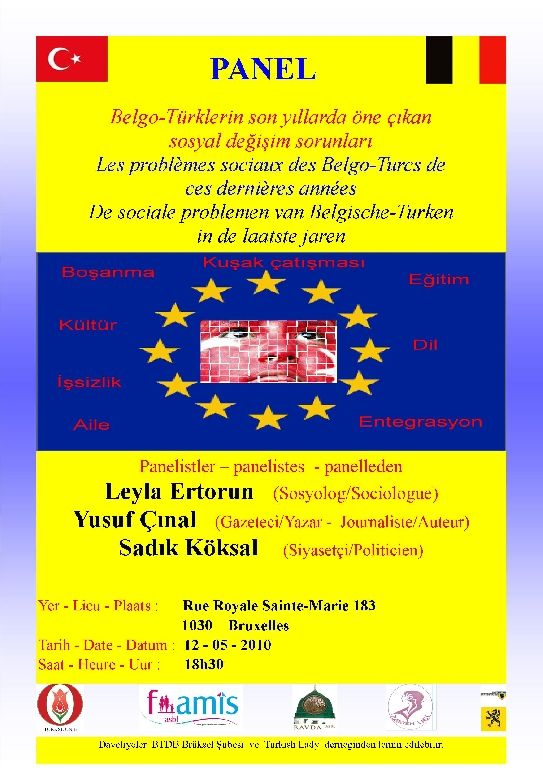 Turkse Unie Brüksel Şubesinde yapılacak olan panel 12 mayıs 2010'da saat 18,30'da yapılacağı bildirildi.