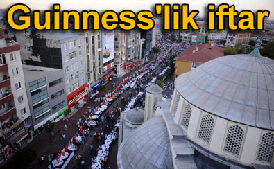 Esenler Belediyesi, Guinness Rekorlar Kitabı'na girebilmek için uzunluğu 10 kilometreyi bulan 7 bin 20 masada, 41 bin 120 kişiye iftar verdi.